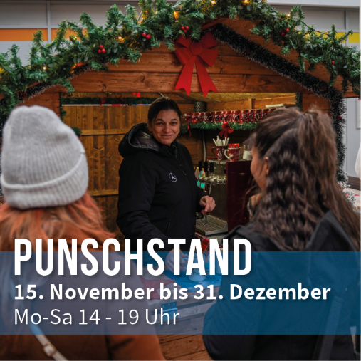 Auch in dieser Saison ladet unsere Punschhütte zum gemütlichen Verweilen und Genießen ein. Freuen Sie sich auf wärmende Punschvariationen, feine Spezialitäten und ein stimmungsvolles Ambiente.